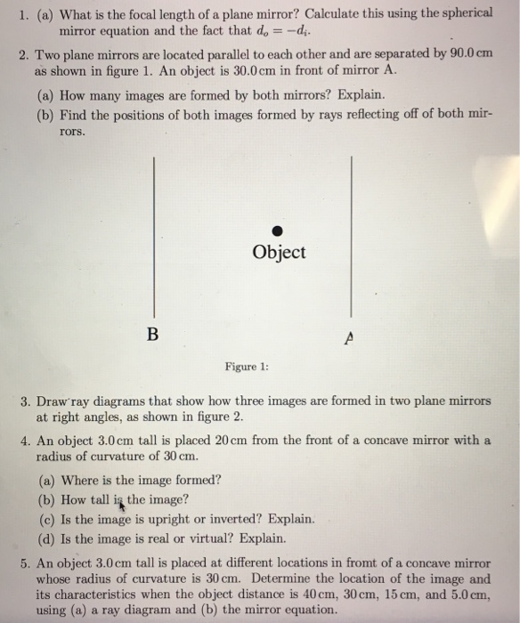 An object is placed between a plane mirror and a concave mirror of focal length 15 cm as shown Focal Length Of A Plane Mirror Is Single Choice The index of refraction of the glass. However, since the the focal point does not focus. the focal length has the same relationship to the center as a concave mirror, \(f=r/2\). It is positive for a converging lens, negative for a. The curvature of the surface of the lens. what is the magnification of a plane mirror? . Focal Length Of A Plane Mirror Is Single Choice.